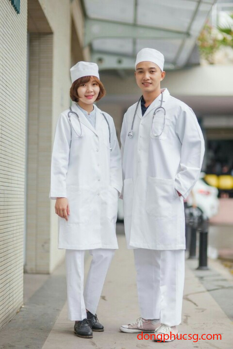 - Đối với đồng phục bệnh viện của y tá có màu trắng: Áo cổ 2 ve, cài cúc giữa, dài tay hoặc ngắn tay, chiều dài áo ngang mông, phía trước có 2 túi, có khuy cài biển tên trên ngực trái; Quần âu hai ly, 2 túi chéo, quần nam có 1 túi sau.