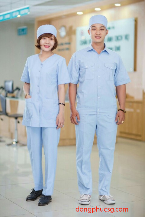- Còn về đồng phục bệnh viện của hộ lý với nữ áo cổ chữ V, tay ngắn, dài áo qua mông, cài nút giữa, 2 túi + Quần âu+ Nón tròn. Với nam áo cổ Đức, tay ngắn, dài áo qua mông, cài nút giữa, 2 túi hộp, may bo lai áo+ Quần Âu+ Nón tròn