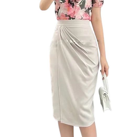 Đồng phục chân váy bút chì xếp ly xéo công sở cao cấp tôn dáng sang trọng, che khuyết điểm bụng to, giúp người mặc tự tin, thoải mái khi mặc
