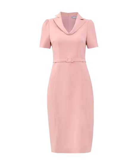 Đồng phục công sở đầm liền cơ bản cổ 2 ve màu hồng