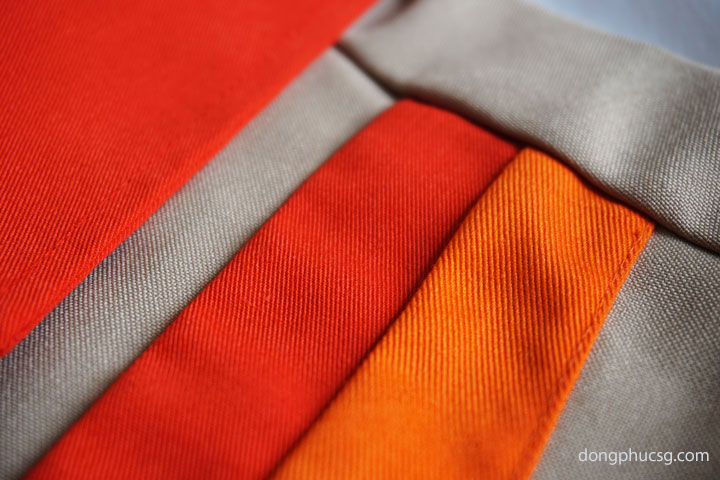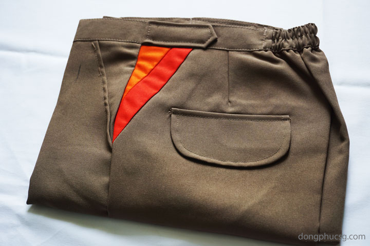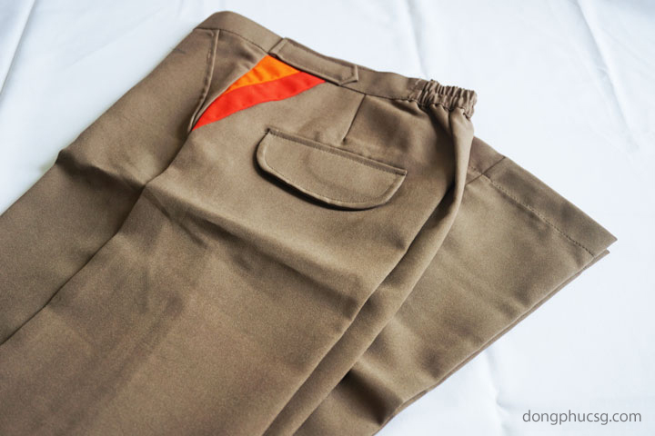 _ Màu sắc: Áo màu da viền cổ và sọc thân màu cam, Quần màu nâu viền cam xéo bên hông