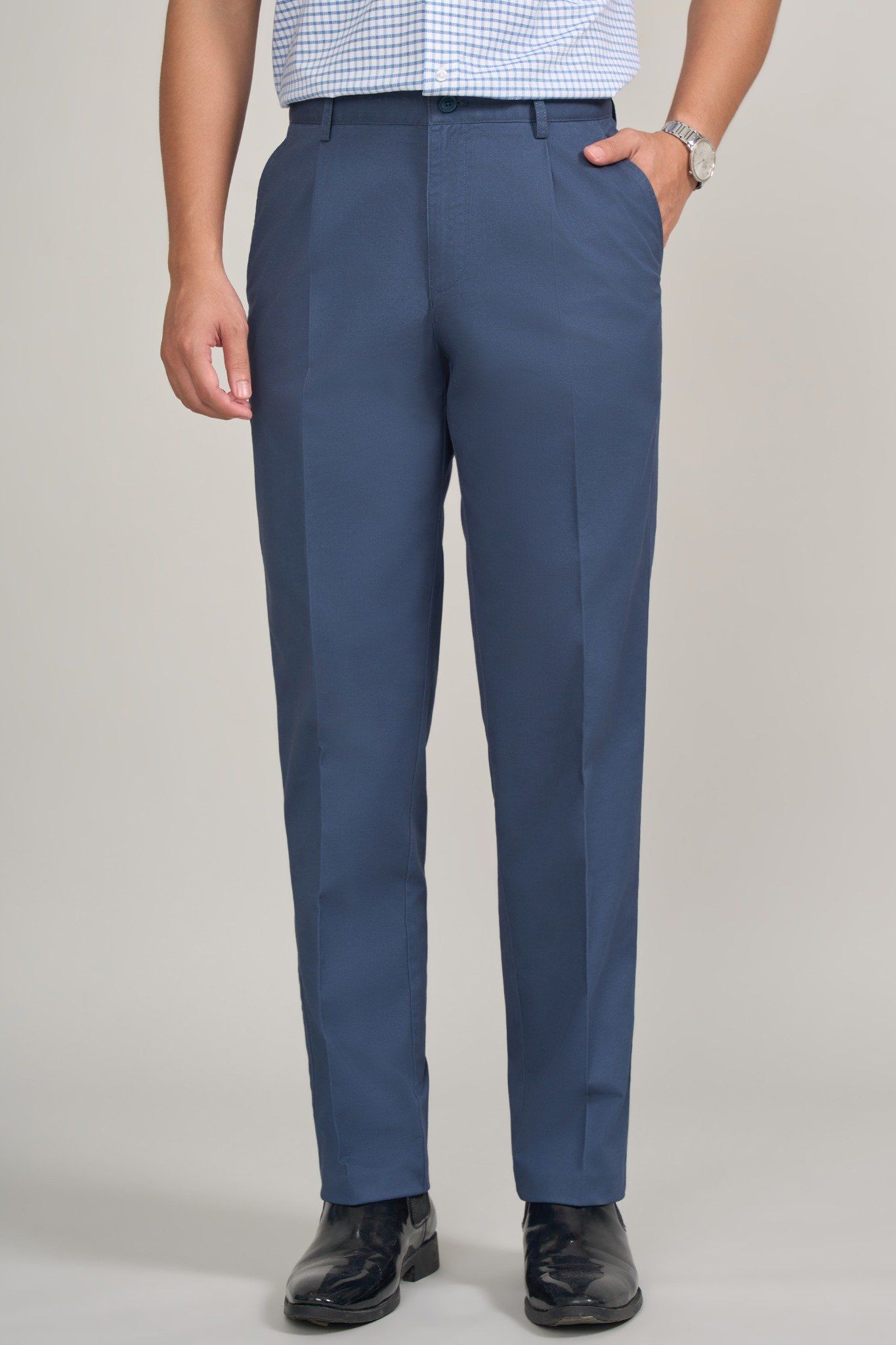 Đồng phục quần tây nam xanh nhạt có ly 04