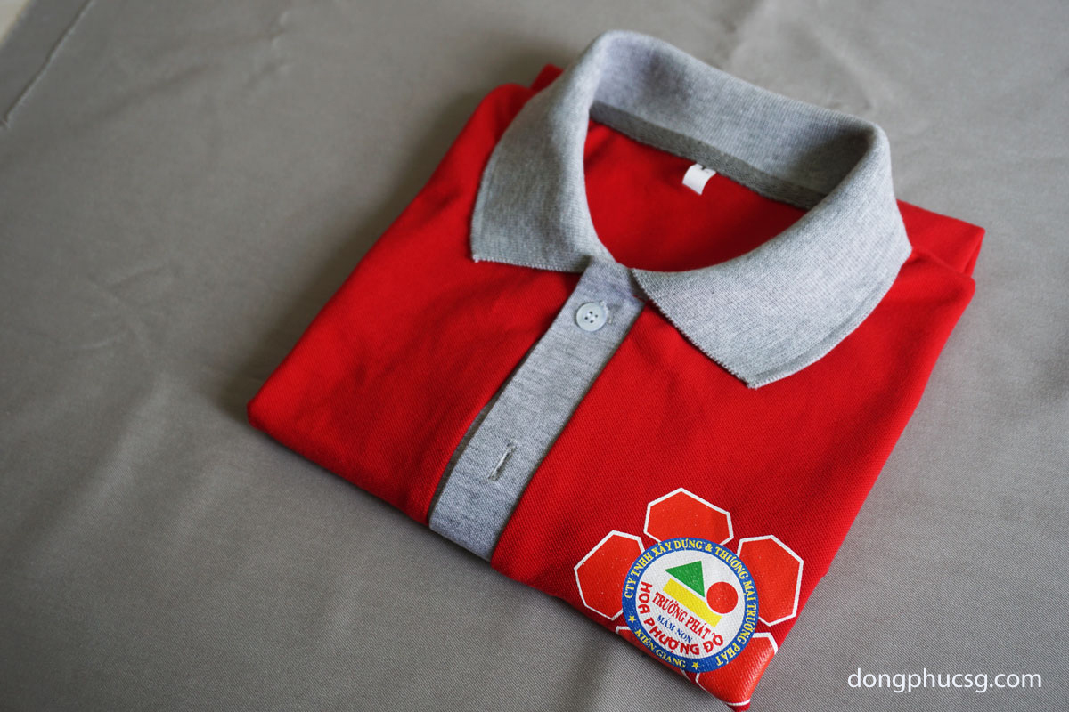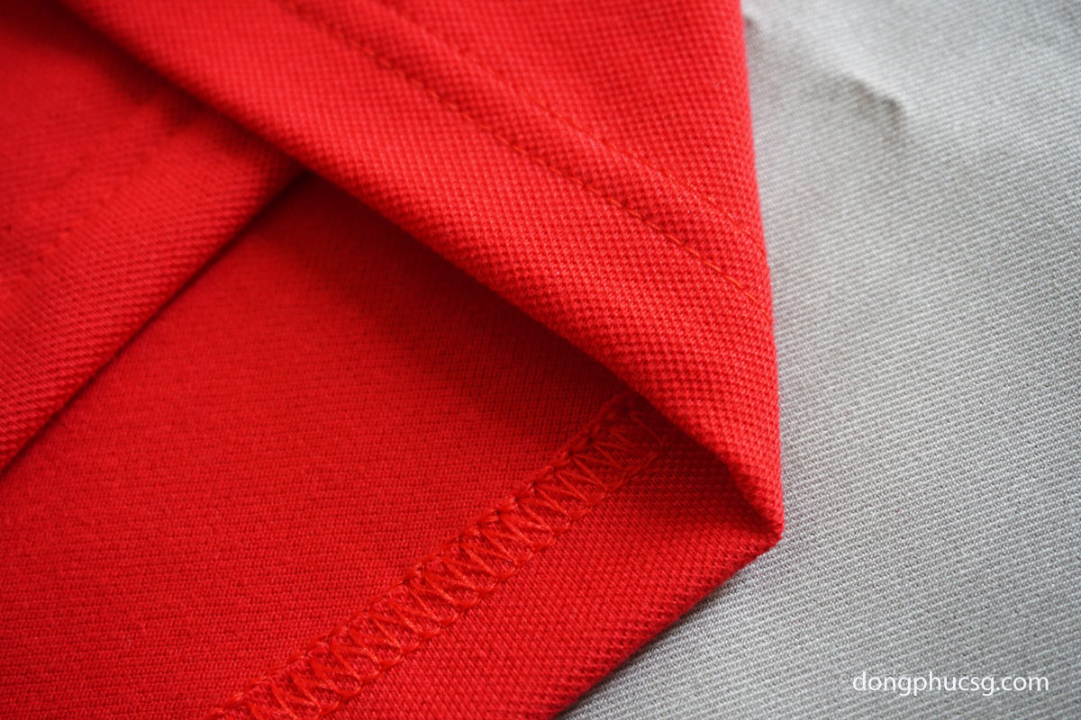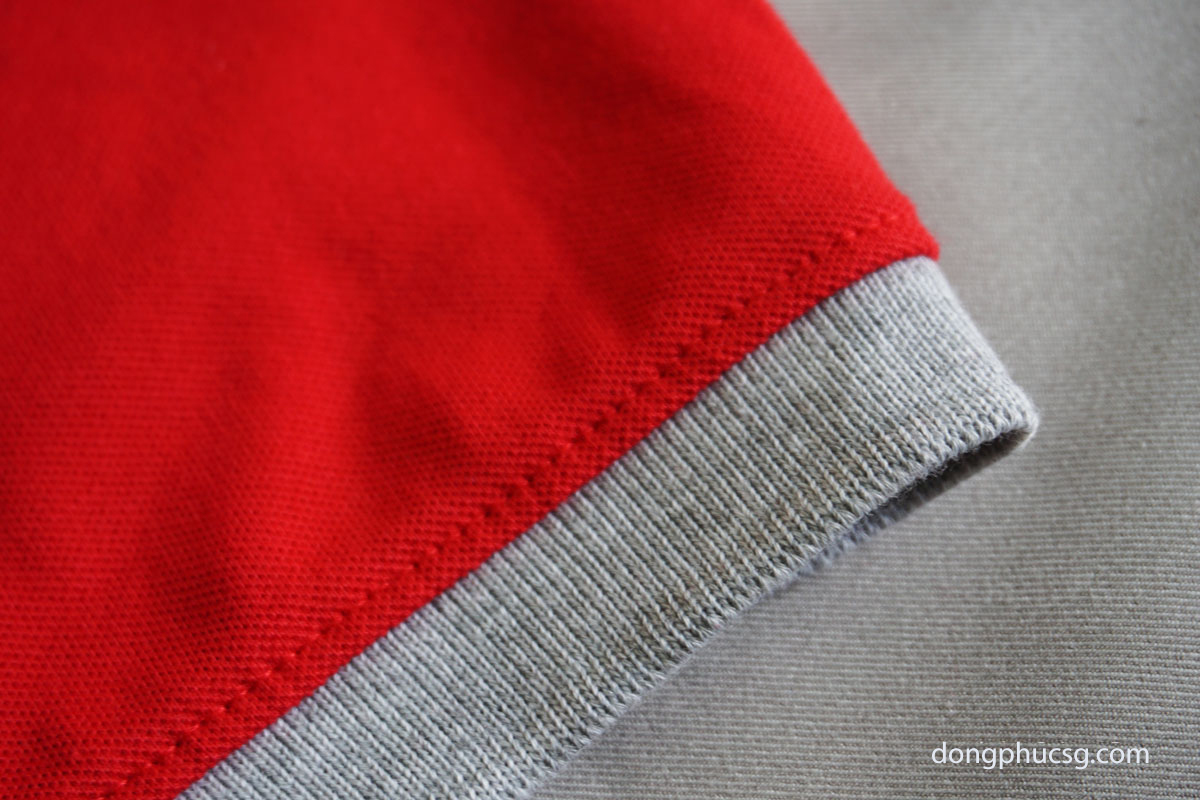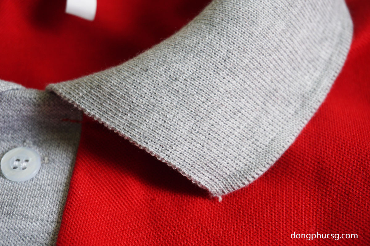 _ Màu sắc: Áo màu đỏ viền cổ,trụ và bo tay màu xám